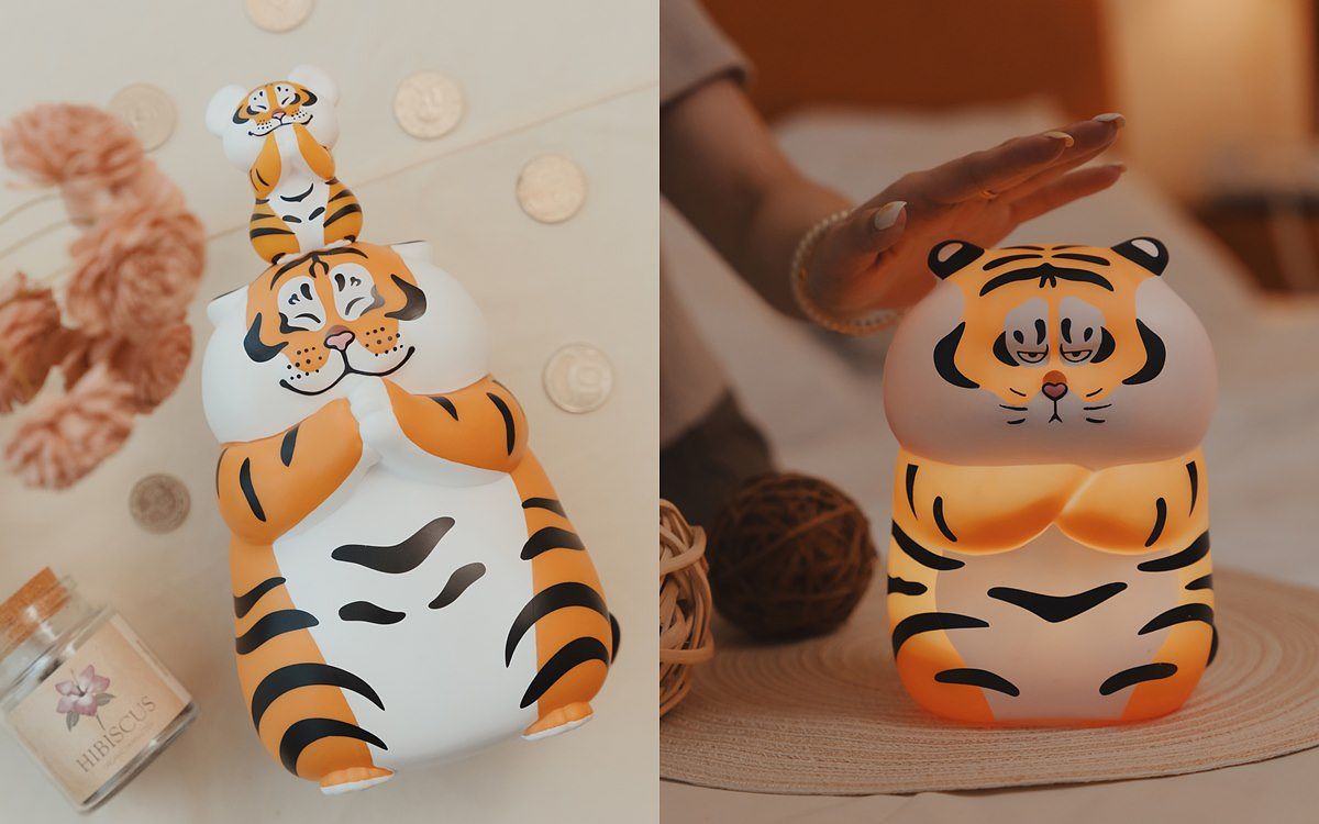 圖片來源:7-ELEVEN提供 另有首次推出的「生氣拍拍夜燈」,將經典貼圖胖且生氣立體化,雙手叉腰搭配氣噗噗的討拍表情,讓粉絲好想拍拍別生氣,共有白/黃兩種柔和燈光,輕拍即亮。最後則是社群討論度爆表的「胖虎存錢筒」,以高達24cm胖虎疊小虎立體造型,二虎拱手作揖的俏皮模樣適合放辦公桌或是家中玄關迎賓,虎力笑嗨嗨!