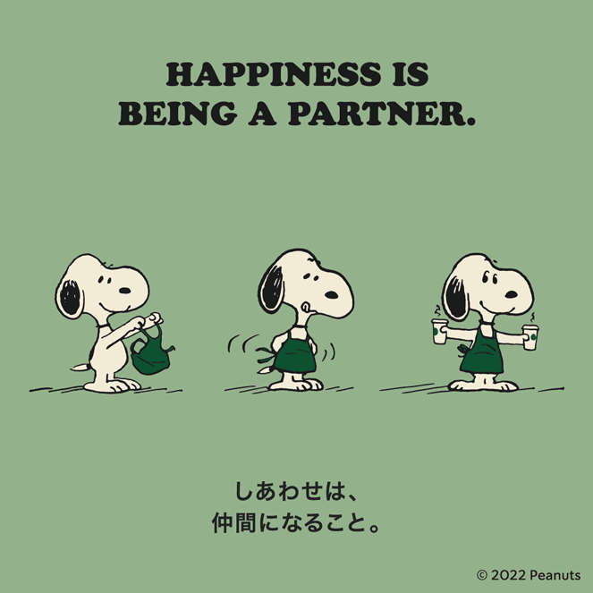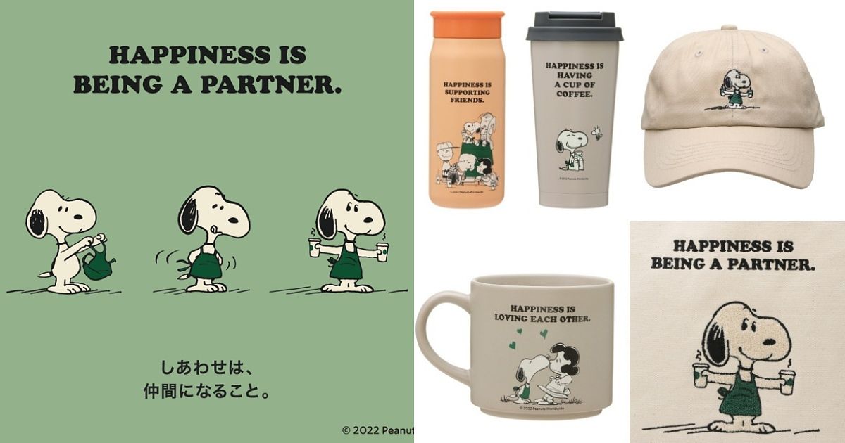 日本星巴克太狂了!近期與超人氣的史努比聯名推出一系列的周邊商品,除了基本的保溫杯、隨行杯、馬克杯,還有T恤、帆布袋與老帽等可愛商品!史努比本人穿上了星巴克招牌綠圍裙,以「What's your happiness?」為主題,讓史努比成為你的夥伴、或是為你準備一杯咖啡、一起分享咖啡,以咖啡將你我連結在一起,看了都覺得暖心無比!