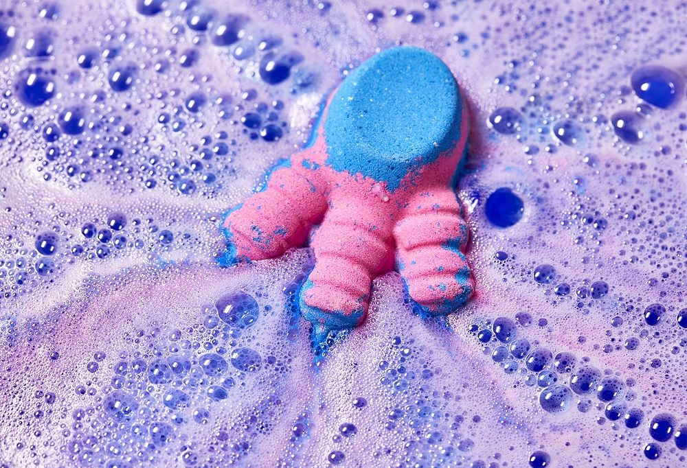 太空飛碟在浴室出沒,緩緩降落浴缸,散發檸檬特飲般的甜美果香。飛碟內滿戴色彩鮮豔的爆炸糖和浴鹽,頂部和主體均能分開用於浸浴。