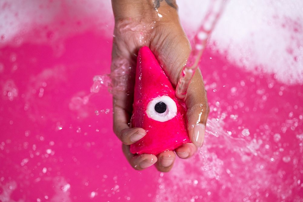 小妖怪在浴缸幻化成粉紅浴水,渗透著醒神的柑橘香氣,讓你放鬆身心,愉悅心情。