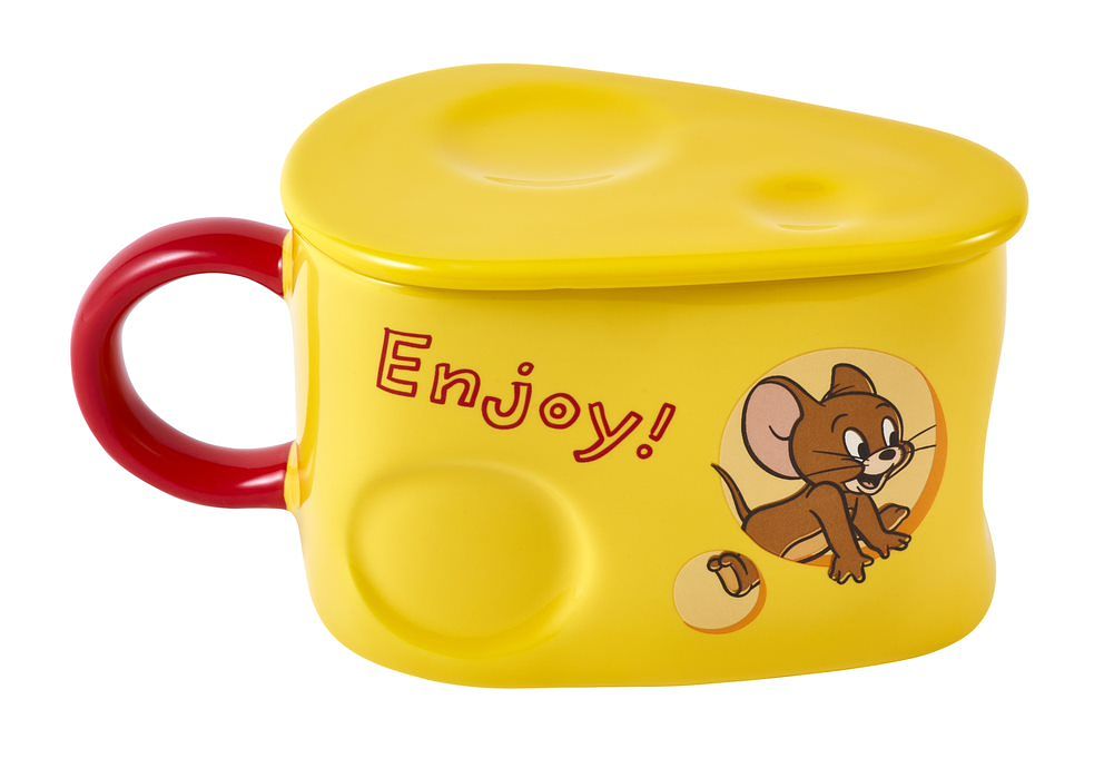 首波共推出5款系列商品,推薦收藏控必買「起司馬克杯」,以傑利鼠最愛的三角塊狀起司為造型,表面還有圓形孔洞,簡直是從動畫搬到現實生活中。兩款分別印有湯姆貓、傑利鼠圖案,杯身為陶瓷材質,不僅外觀吸睛,質感也十足,收藏價值超高!粉絲們印象深刻的「變形版」造型也在集點活動中扮演居家實用好物,被熨斗燙平的湯姆貓這次不當階梯地毯,而是挺直身子化為吊掛收納袋,共有三格透明袋幫消費者收好生活小物;壓成鬆餅狀的傑利鼠則成了絨毛坐墊,柔滑表面或坐或靠都舒適。