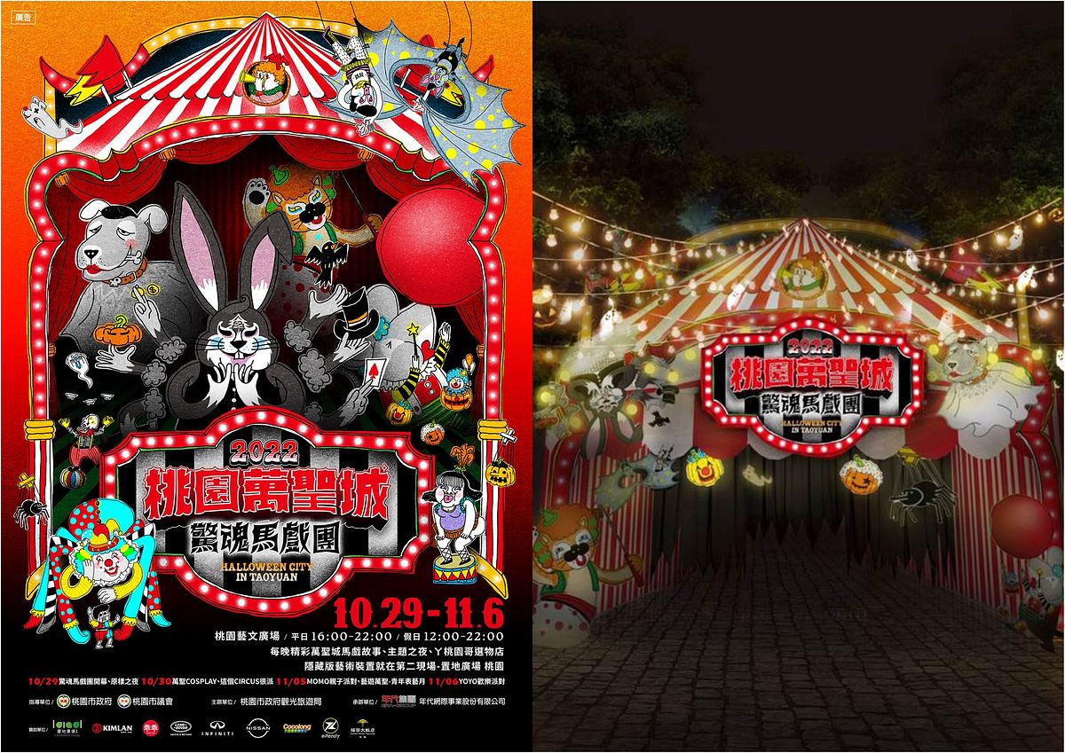 由桃園市政府主辦的「桃園萬聖城」將在10/29開城!今年以「驚魂馬戲團」為主題,會場從桃園藝文廣場到同德五街的藝文大道,活動時間從10/29-11/6 總計9天,現場將出現多座恐怖可愛、邪惡無害的大型裝置藝術,出期間周末分別安排魔術秀、Cosplay、熱門音樂派對以及小朋友最喜歡的MOMO、YOYO偶像明星見面會,而平日每天晚上也推出不同主題之夜。