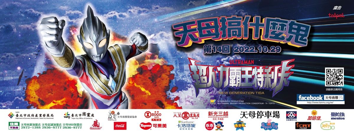 台北天母商圈連續14年舉辦的萬聖節活動「天母搞什麼鬼」,集合天母商圈店家,從原本天母地區居民的社區活動,現已發展成每年萬聖節最知名的掃街活動!今年從10/28(五)起以「百鬼夜行」打頭陣,10/29(六)在天母運動公園有日本「超人力霸王特利卡、迪卡」、「機界戰隊全開者」和「佩佩豬與弟弟喬治」和大家見面。