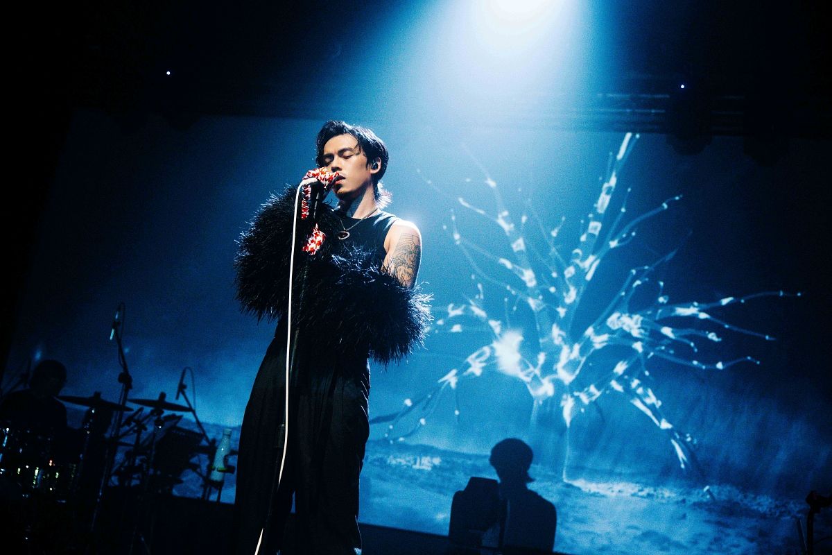 而在演唱其中一首新歌〈不要靠近〉前,HUSH則面色凝重地闡述自己在籌備新作的赤裸心聲。他說面對如今的音樂市場,難免會有種「Go big or go home」的感受,接著場燈一暗,緩緩唱到歌詞中的一句「我也只剩下羽毛而已/你會珍惜還是同情」,不只呼應著第二套造型的羽毛裝,也讓人聽見創作者在交出作品時,是如此的真誠與忐忑。
