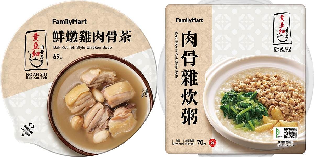 除日系美食外,還有正宗新加坡風味溫暖湯品、經典台味料理接力登場!「全家」再度攜手黃亞細肉骨茶接力開賣隱藏版「肉骨雜炊粥」及「鮮燉雞肉骨茶」,微辣的白胡椒風味與溫潤醇厚的豬骨湯底,暖胃又暖心。此外,更首度聯名台中知名茶館「有春茶館」,將店內人氣懷舊台菜料理三杯雞、麻油雞化身烤飯糰,11/23起「三杯雞烤飯糰」與「麻油雞烤飯糰」於全台「全家」開賣,售價45元。