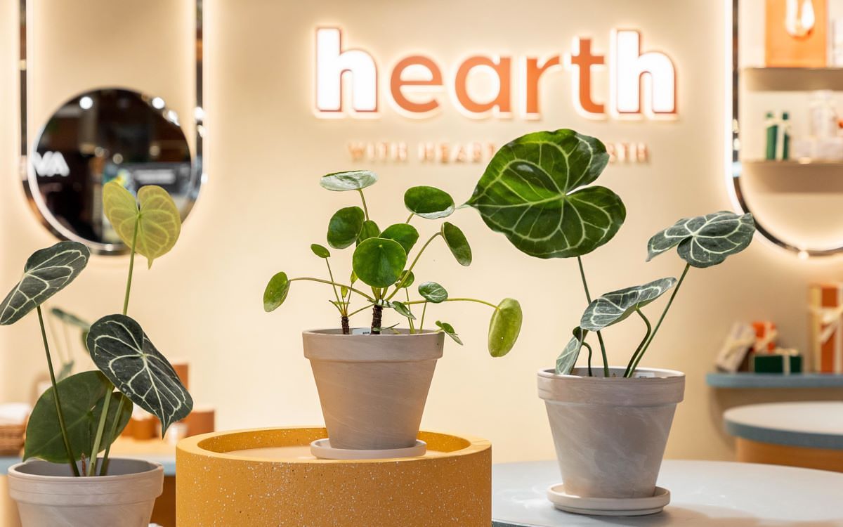 hearth與全台生活風格小店合作,以店中店模式豐富美學體驗。首波與「全台最美植物選品店」MRS. INOUE PLANT SHOP井上太太植物雜貨店攜手,推出專屬圓葉花燭、鏡面草,自帶美好生活治癒系盆栽,讓大家走進hearth感受滿滿綠植療癒力,成為忙碌生活節奏裡,讓身心獲得補給的一方城市綠洲。