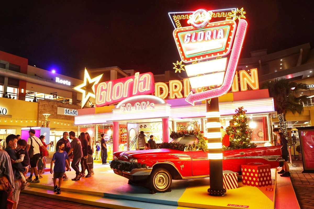 走進一期廣場映入眼簾的是復古美式聖誕餐廳景點,有著大型霓虹燈看板、美式敞篷老爺車和復古電話亭,搶眼又逼真的裝置絕對要停下來大拍特拍!敞篷車上滿載各式各樣的禮品,側邊點綴送禮中的聖誕老人和薑餅人,聖誕氣氛爆棚,絕對能拍出甜滋滋的情侶照~聖誕場景READY好了,當然就要把拍照秘技學起來!技巧超級簡單,只要相互依偎並輕靠敞篷車身,就能展現甜蜜氛圍,雙方幸福洋溢的笑容更是將這組情侶照完美達陣!
