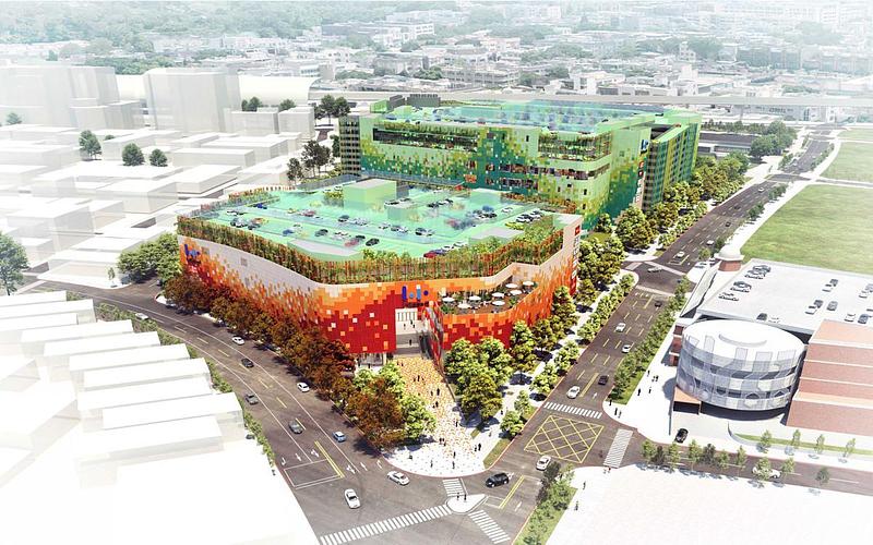 圖片來源:Mitsui Shopping Park LaLaport 「Mitsui Shopping Park LaLaport 台中」以「for the Vivid Colors of Life」為設計概念,象徵著這座城市即將邁向新時代,孕育生活新色彩。本開發案位處台中市東區,距離台鐵台中車站步行僅需約6分鐘。本案「北館」以融入緊鄰的湧泉公園綠意作為視覺設計的元素,而「南館」設計則與台中市民生活日常所倚賴的建國市場紅磚外牆相互輝映。未來全館開幕之後,顧客可以透過二棟商場建築間的天橋串聯輕鬆悠遊於「北館」與「南館」之間,享受怡然自得的購物與移動的樂趣。本案匯集包含流行性品牌、生活消費性商品品牌、日系品牌、大型超市、娛樂設施、以及台灣消費者最喜愛的餐飲品牌等。除了滿足消費者日常生活之所需,更能盡情享受獨一無二的時間消費型新生活,建構讓消費者體驗在此悠閒渡過一整天的商業設施。