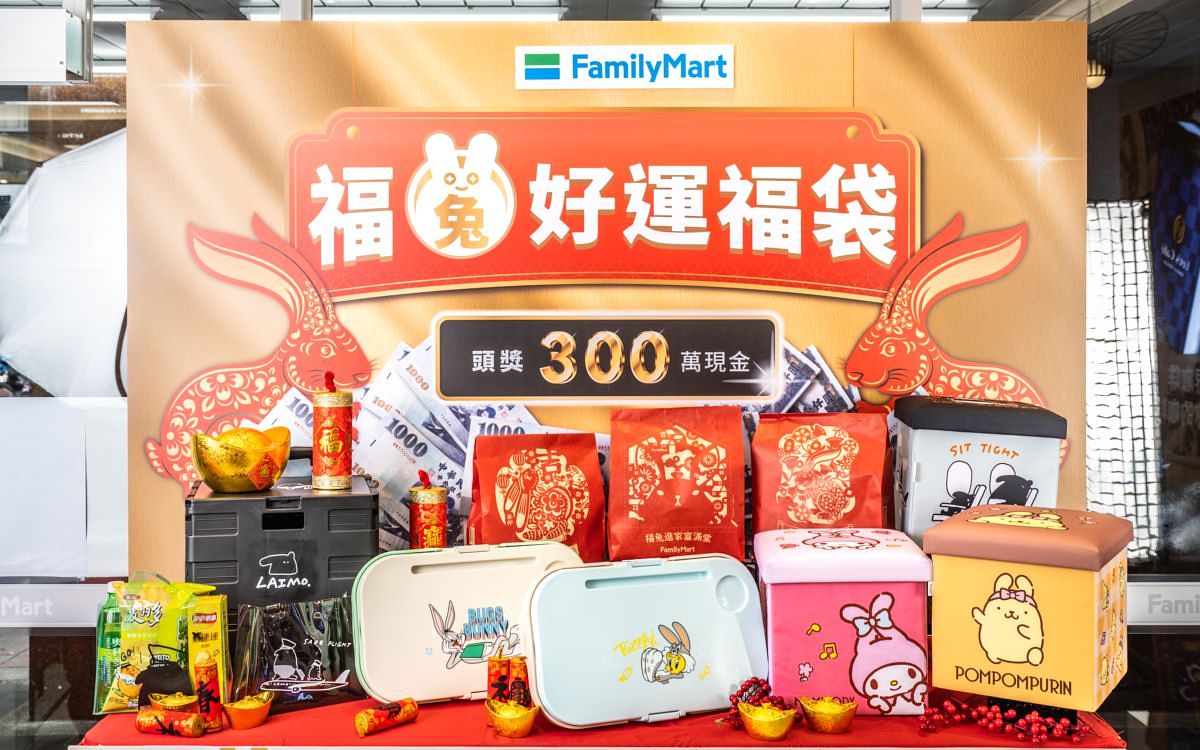 看中IP聯名商機,「全家」除推出95萬份福兔好運福袋外,更與美樂蒂、布丁狗、兔巴哥、崔弟與馬來貘合作,加碼推出6款肖像福袋,將於1/11開始販售,每款肖像福袋皆有專屬周邊及抽獎券,讓消費者可與喜愛的角色們共同迎接新年。肖像福袋不僅外型可愛、周邊實用,抽獎券也加碼,凡購買肖像福袋並登錄序號,即有機會再抽中專屬特獎現金100萬,成為百萬富翁機會多更多;亦有蝦皮商城購物滿499折40元的專屬優惠券,豐富獎項及優惠券讓消費者好禮拿不完!