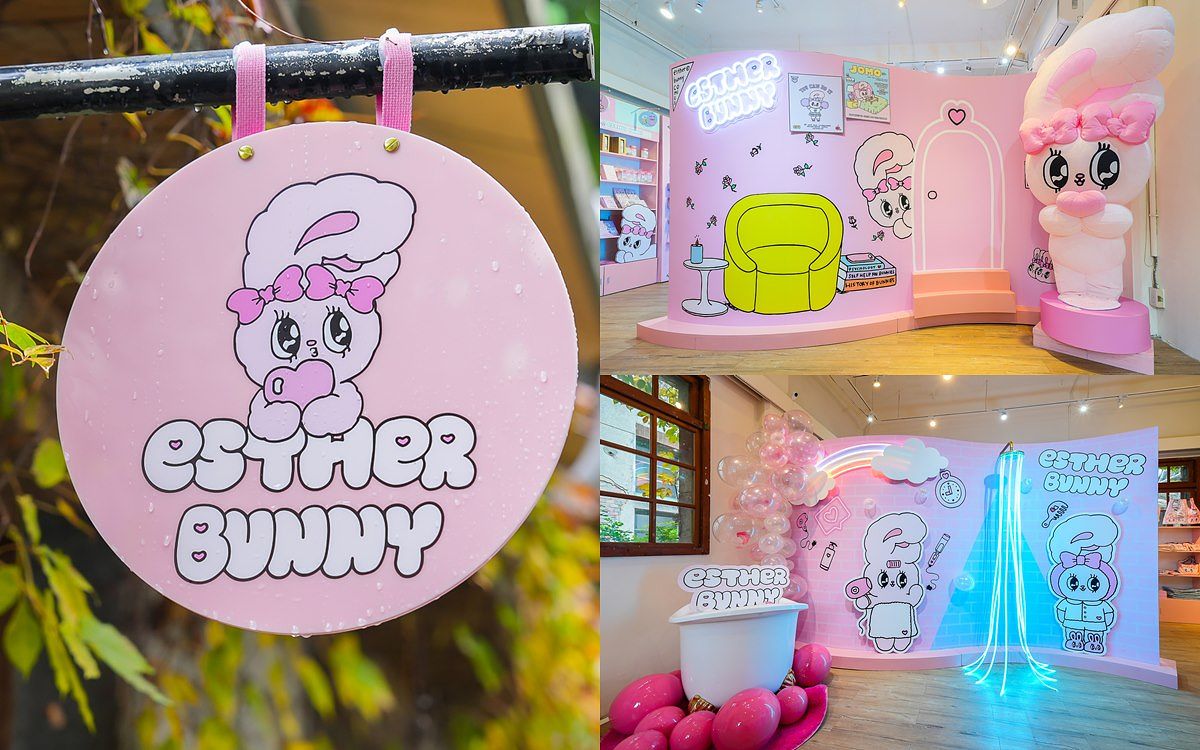 《Esther Bunny 艾絲樂小兔》台北華山期間限定店五大拍照打卡點搶先看!入口處就能看到「粉粉乘涼椅」及「1.8米高的巨型艾絲樂小兔」捧著愛心在門口迎接粉絲,場內重現經典插畫中的夢幻情境區,帶領大家進入到艾絲樂小兔「粉色夢幻房間」!接著來到她的淋浴間,「粉紅泡泡浴」及霓虹燈管製成的花灑,讓粉絲置身在粉色泡泡之中!最後門外的拍照點也千萬不能錯過,艾絲樂小兔穿著花花洋裝推著「Pink 粉粉購物車」,嘟嘴逛街的模樣絕對殺光粉絲底片!