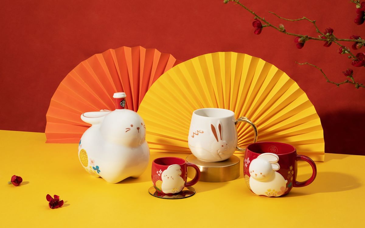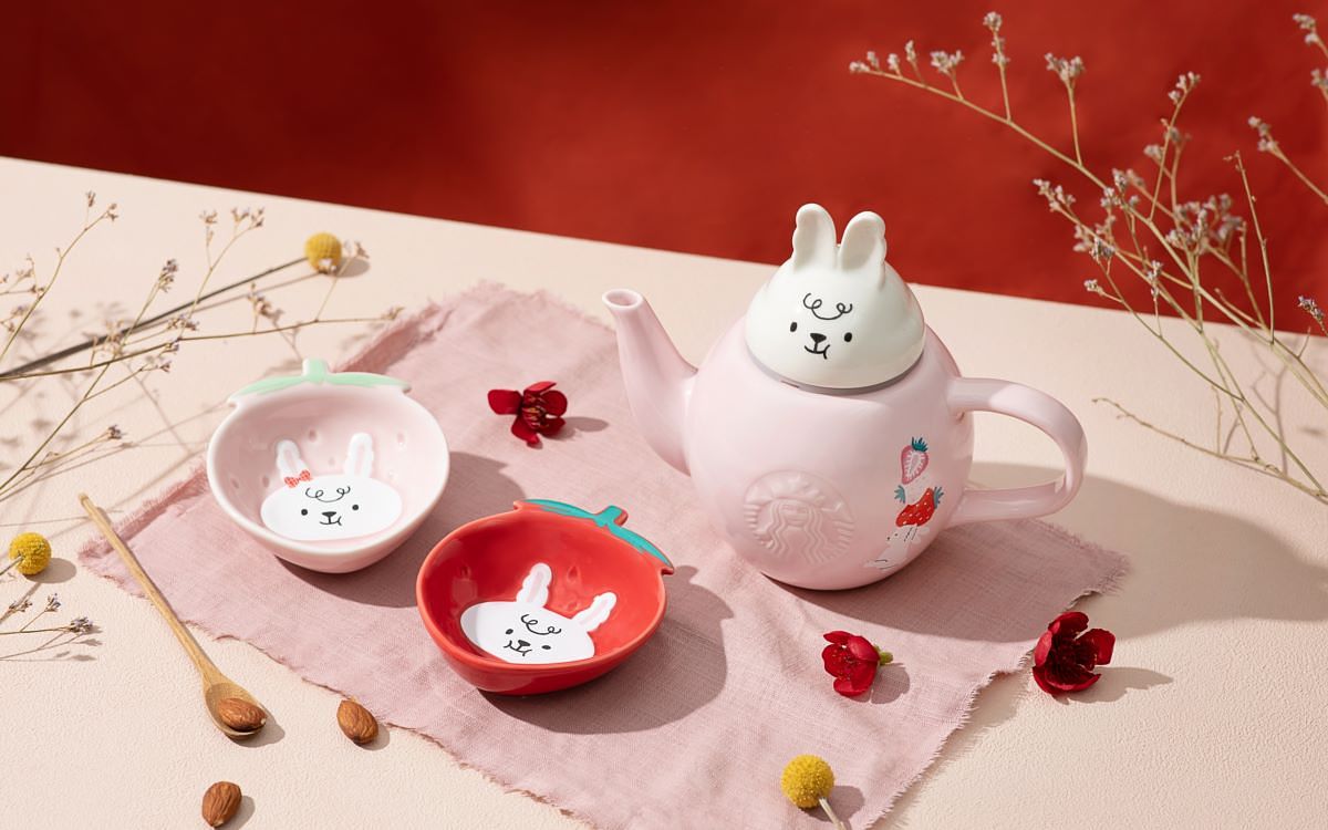 圖片來源:星巴克 以可愛俏皮兔子為設計發想的「兔和食得茶壺」與「雙兔守運小碟組」,讓您與家人或好友相聚團圓時,使用應景茶器並搭配小碟,讓節令午茶時光更添年節氛圍。