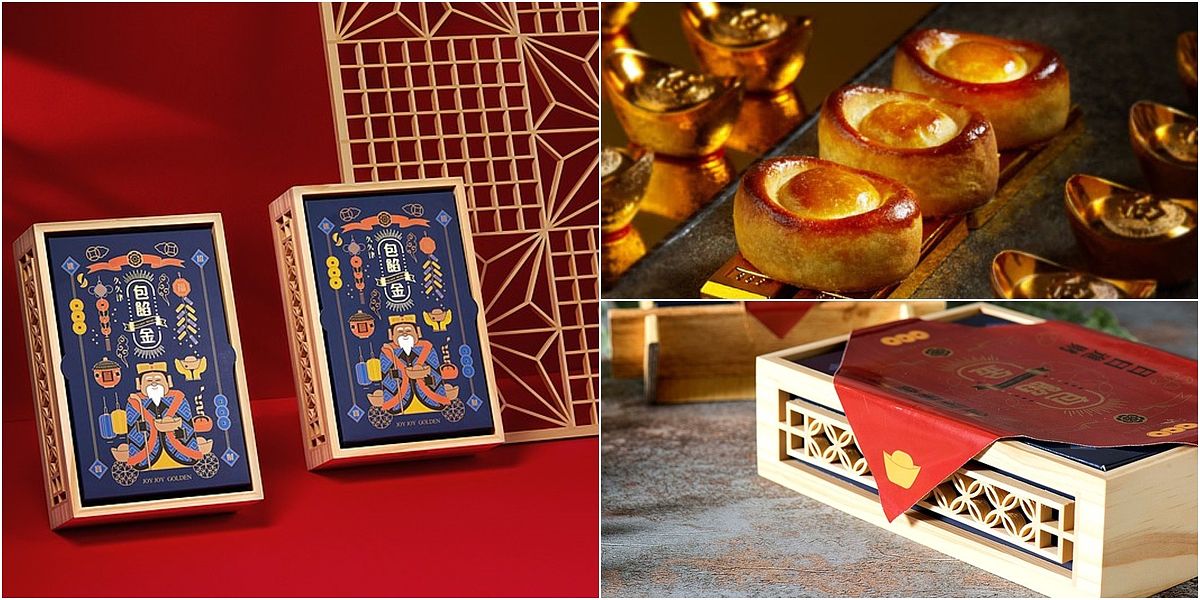 以土地公手上拿著的金元寶為設計理念的台灣傳統糕餅,象徵著財源廣進,內餡使用金瓜與起司,搭配鹹蛋黃流心醬, 外皮則是獨特的法式酥皮,口味與口感相當具有特色。外盒設計採用台灣日式窗花的木匠工藝,兩側更以七寶古錢作為造型象徵財源滾滾,吃完後外盒還能留存當成裝飾品,可說是一物多用啊~