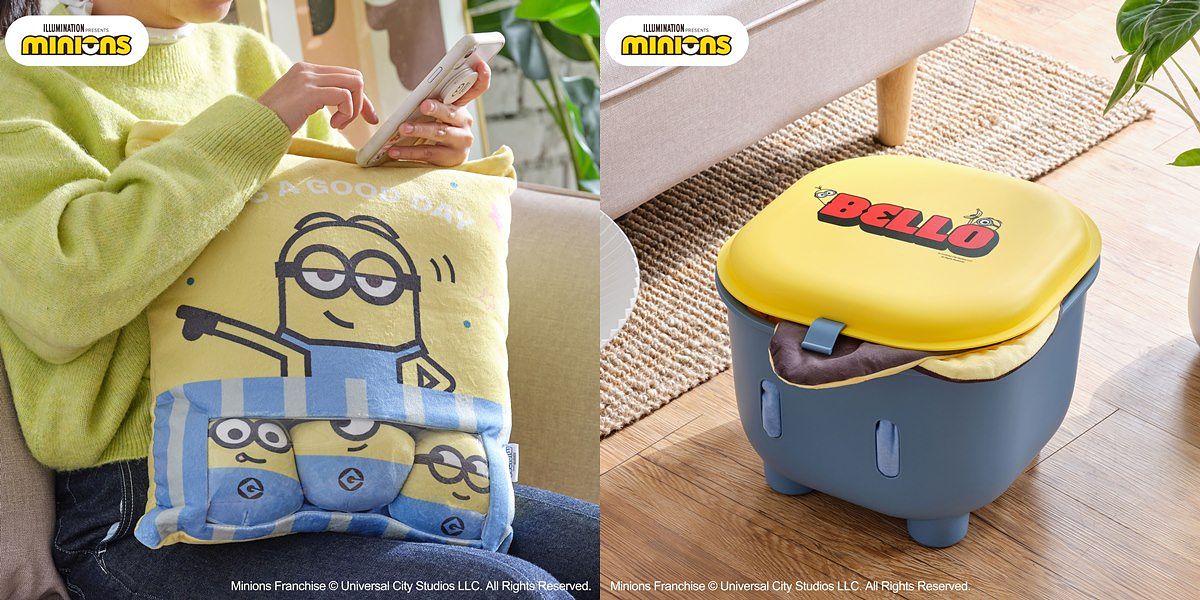 圖片來源:全家 新年居家耍廢首選小小兵零食袋靠枕,靠枕內還有戴夫、史都華、蘿蔔3個最受歡迎角色絨毛球,可拿出把玩增添樂趣;冷冷天氣也適合蓋上小小兵造型毯,大尺寸可愛造型,放假舒服窩沙發看電視超搭。此外更有實用居家好幫手,史都華、卡爾造型餐盤的陶瓷分隔設計,適合在午餐、下午茶使用,不僅可愛也能優雅吃好料;小小兵造型收納桶,經典配色搭配可愛造型,適合收納玩具、居家物品,更附贈造型貼紙可自由發揮創意,歲末就讓可愛居家質感小物陪你一起整理壞心情、開心迎接新年!