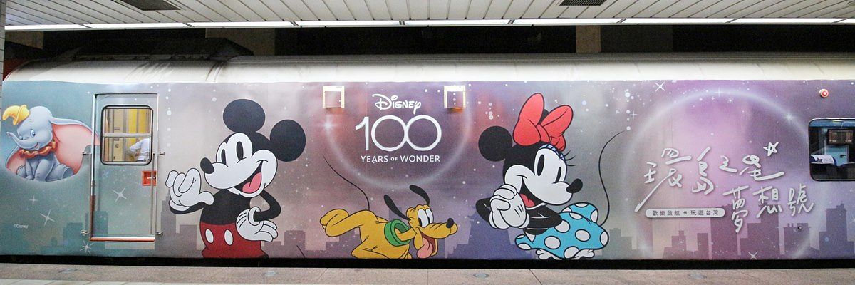 2023年喜迎迪士尼百年慶典,「環島之星」這次特別結合此盛事主題,打造熱鬧歡愉的迪士尼主題觀光列車,並於今日搶先暖慶發表!列車外觀採用迪士尼百年慶典的專屬圖稿進行設計,並且首度以太空銀的金屬色調為基底,搭配幻彩炫光的色彩背景,呈現具有光澤感的效果,營造滿滿未來感的特色風格;而每節車廂外觀所選用的角色則以彩色繪製,在太空銀和炫彩背景的襯托下,帶來畫龍點睛的效果。列車品牌字則設計手寫字體,營造旅人手札的味道,增添大人味與文青氣息,展現有別以往的列車印象。