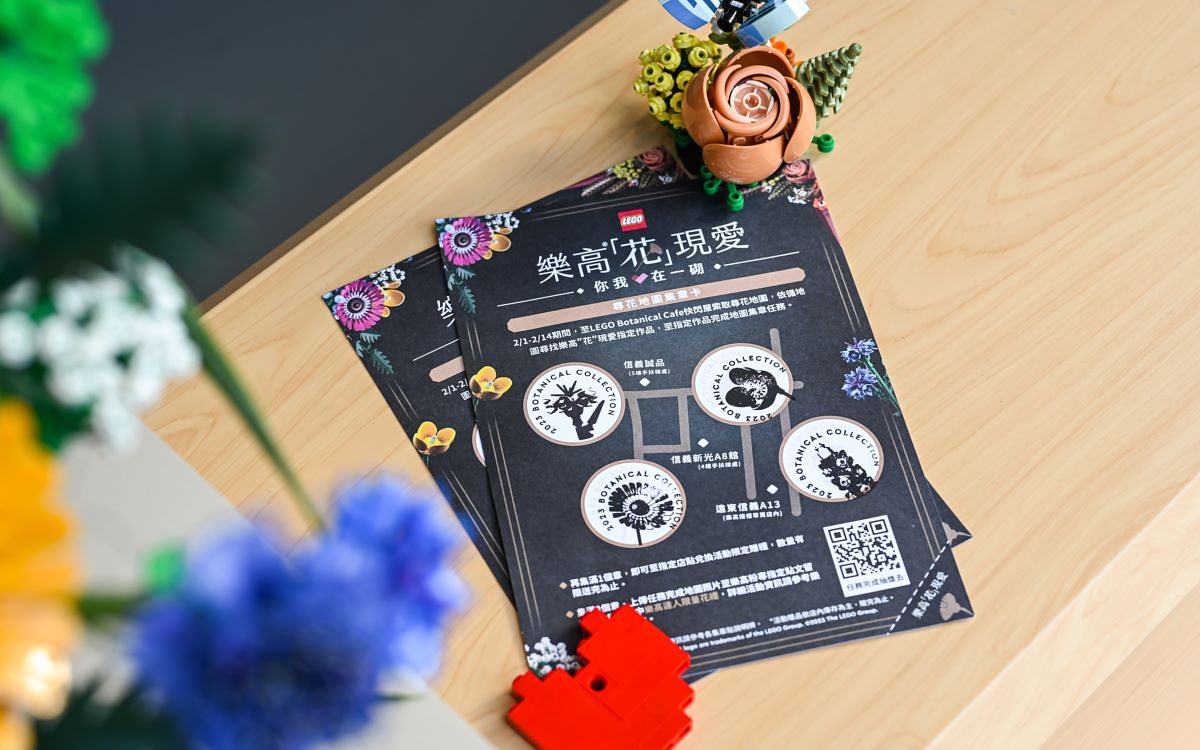 PHOTO VIA LEGO 除此之外,樂高邀請多位樂高達人戚心偉、侯彥仰、詹政峰、戴樂高運用樂高花藝系列創作具備個人獨有風格的樂高花藝創作,並推出《“花”現樂高》尋花活動,於活動期間至快閃屋索取樂高尋花地圖,並於信義區百貨遠東信義A13(樂高授權專賣店)、信義誠品(5F手扶梯口)、新光三越A8館(4F手扶梯口),尋找樂高達人花藝創作作品,完成尋花活動蓋章即可獲得限量贈禮;上傳任務完成地圖照片至樂高粉絲專頁指定貼文留言,更有機會再抽樂高達人限量花禮。
