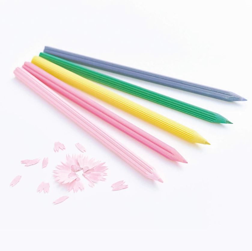 3. 環保花色鉛筆-兼具實用、精巧細緻外型與廢紙加工製作的環保特色,除獲得日本文具大賞外,同時榮獲德國iF設計獎,色鉛筆橫切面為日本傳統花朵造型,削鉛筆時彷彿落下美麗的花瓣,相當具有巧思。