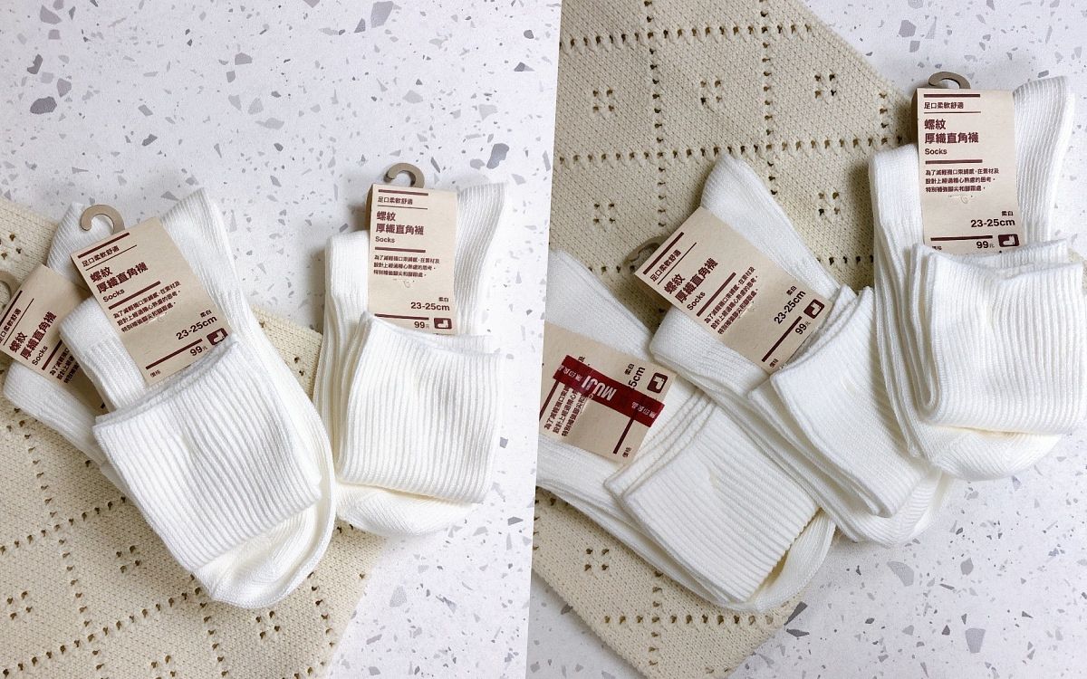 無印良品直角襪應該多數的人都略知一二吧!不過我最推薦的『錐形』款式,因為一般襪子我很常穿1-2個月就會大鬆,畢竟小腿比較粗點,但錐形款式本身襪口就會比較大,加上腳跟也很厚實,所以這系列的襪子我穿了兩年以上都還沒淘汰過~CP值真心高呀!(行銷企劃Pobbi)