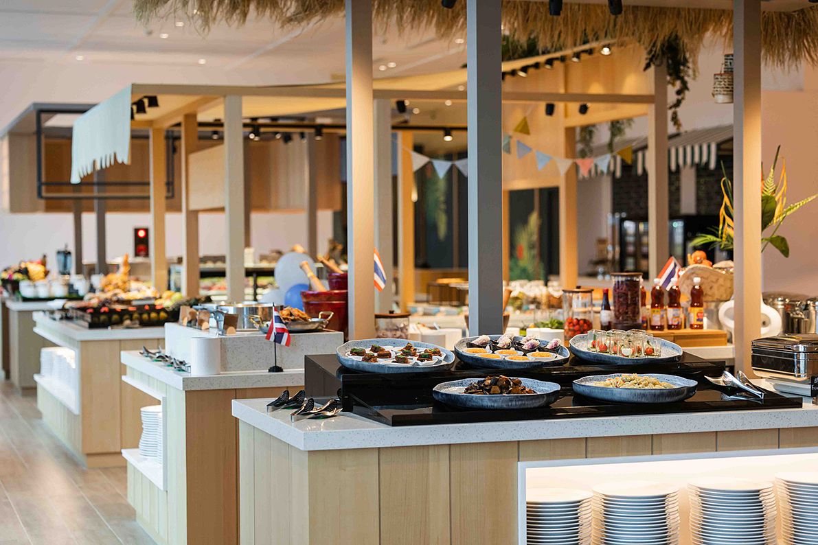 酒店邀請名廚江振誠擔任餐飲創意總監共同規劃,第一階段開放archi藝廚、pelago百匯廚、coco椰林咖啡等三間餐廳服務,住客們能如同搭乘豪華遊輪時可依喜好選擇不同主題的餐廳。
