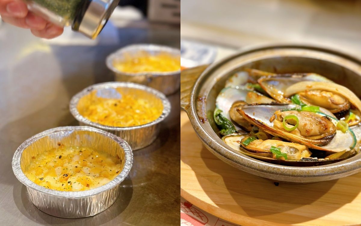 左:起司奶油玉米 58元 / 右:塔香淡菜 118元