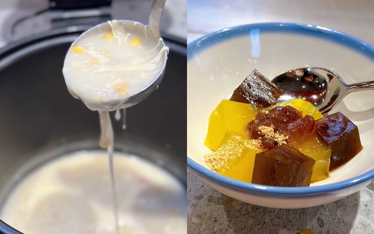 現場設有可以無限取用的自助吧,除了白飯無限量供應,湯品與飲料也能暢飲,還有特色甜點,多樣選擇與飽滿份量,用餐完畢後還有餐後甜點唷!