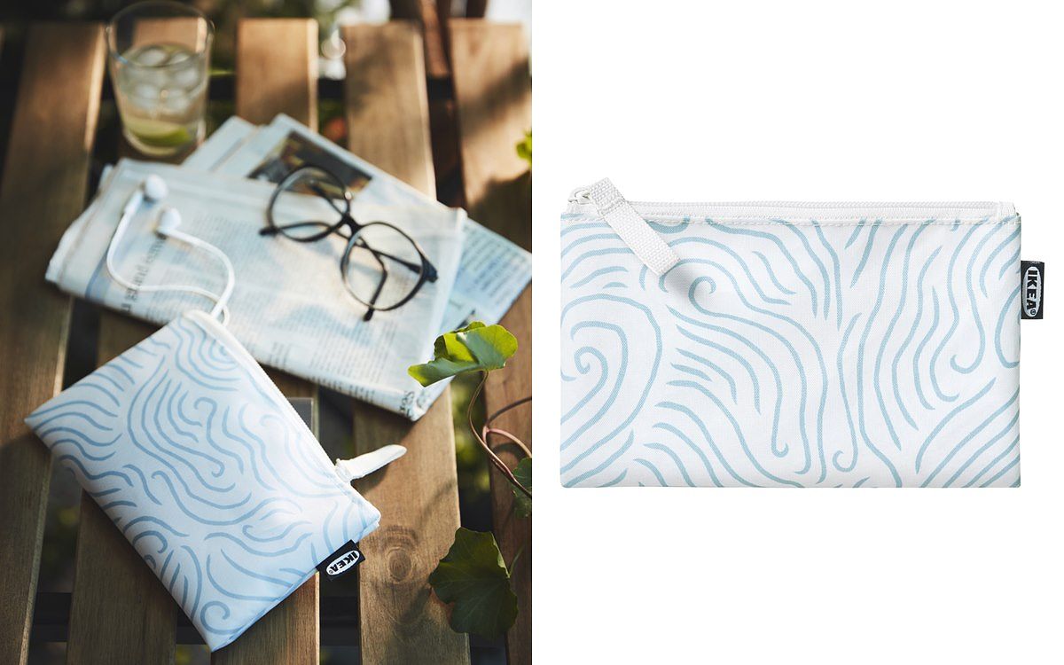 新品SKÖRDA配件包,藍白交織的不規則圖紋,展現清爽的夏日氣息,可收納化妝品、髮夾、電線和充電器等物品,簡單將所有細小物見妥善收納,讓你帶著好心情去旅行!