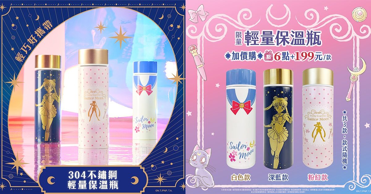 圖片來源:7-ELEVEN 外出系列則推出「304不鏽鋼輕量保溫瓶」,有主角水手月亮、水手月亮剪影及白色水手服三款設計,可保溫保冷,夢幻又實用;「經典造型傘」則推出大直傘及鳥籠傘兩種傘型,傘面分別為貓咪露娜與阿爾特米斯以及水手月亮剪影經典元素,讓美戰迷超期待下雨天;粉紫色絕美夢幻的「皮革肩背包」,圓形包款結合露娜與阿爾特米斯設計,外出都有好心情;另還有體重計及與LOTIN 聯名飾品,美戰迷準備手刀搶貨!