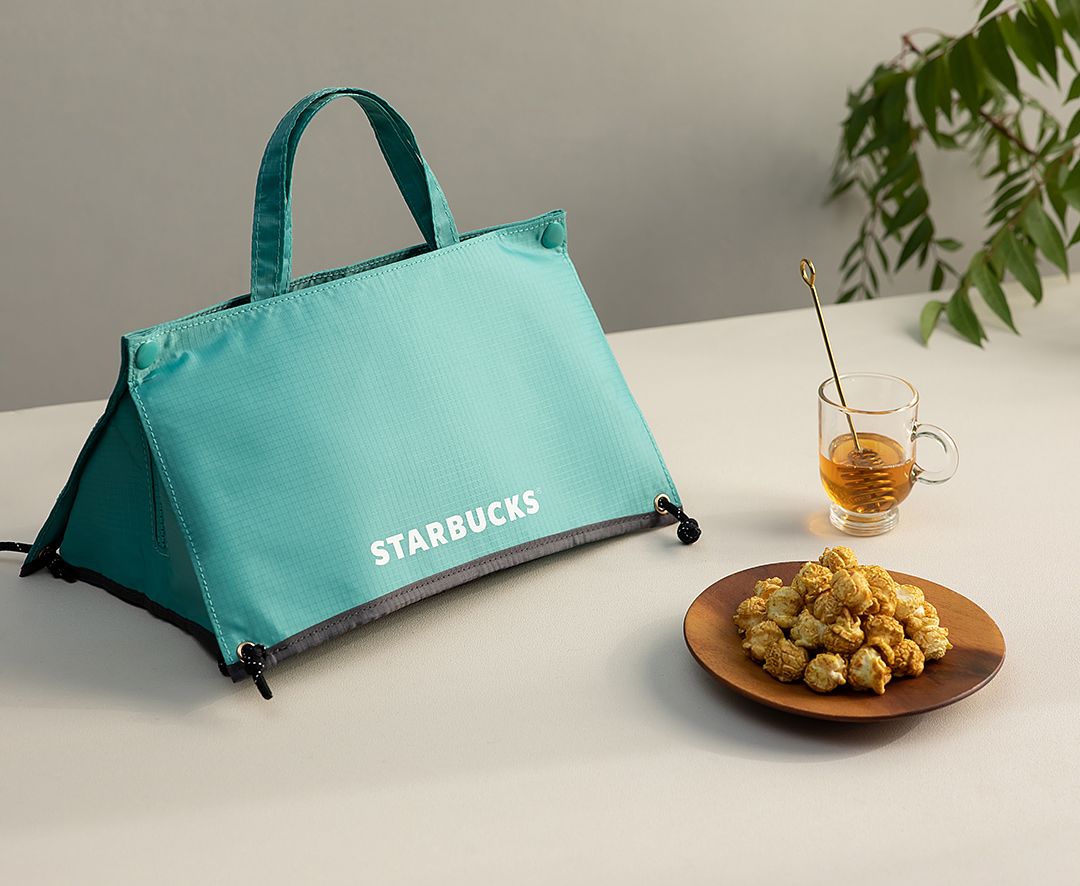 包裝食品部分,首推「蜂蜜奶油風味爆米花收納袋」,靈感來自七八月戶外活動的常用工具-帳篷,以特製星巴克帳篷為外型,實為實用性十足的行李收納袋,搭配香甜涮嘴的全新蜂蜜奶油風味爆米花,好吃又好玩;另有「綜合mini奶油捲」,將酥脆的mini摩卡奶油捲及海鹽奶油捲,裝入特色雙面開書型盒,盒裝設計以咖啡花、果實及枝葉編織出夏日祭典夜,施放煙火繽紛與歡慶的氛圍,正是溫暖的仲夏之夜,歡樂團聚的父親節。