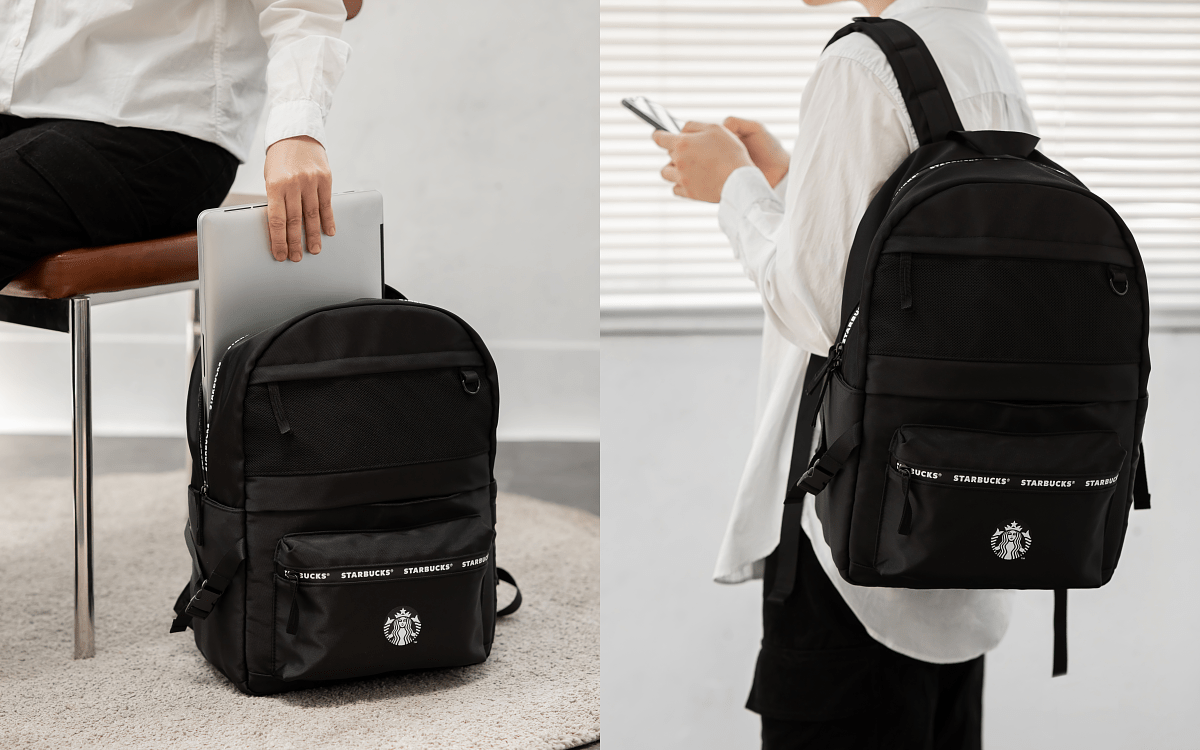 圖片來源:星巴克 本次檔期也推出「黑女神尼龍後背包」,全黑色系的尼龍材質後背包,搭配品牌拉鏈布印刷設計,簡約有型,多層的收納空間,更能滿足日常出遊或是輕旅行需求,同步於7月5日全門市推出。