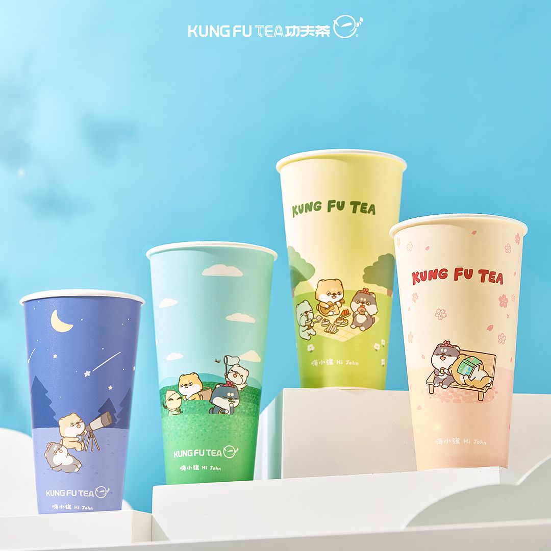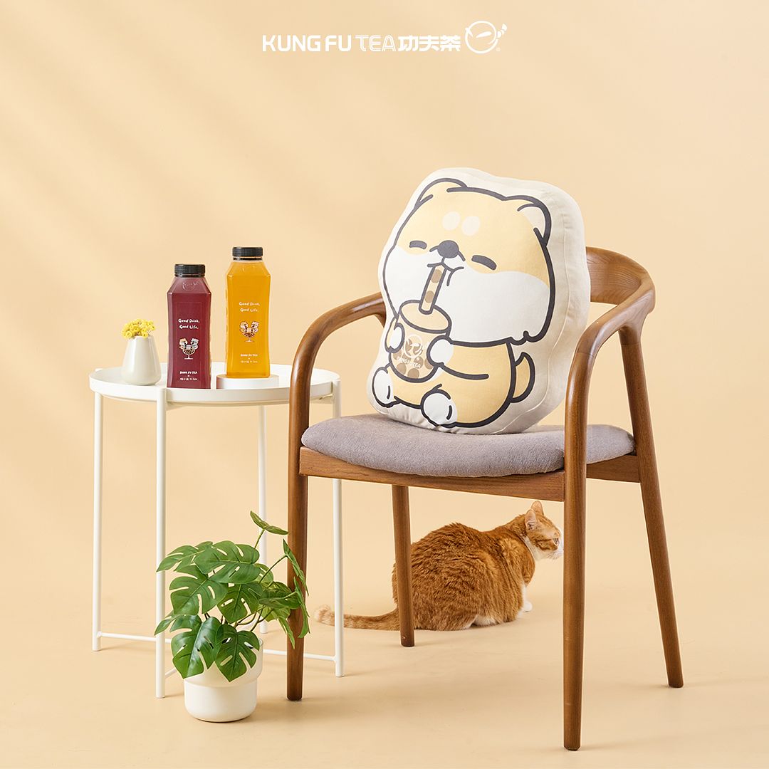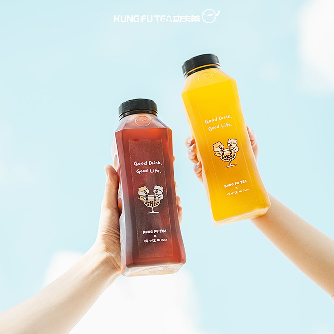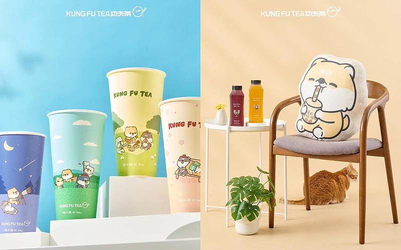 功夫茶招牌吉祥物「阿寶」 攜手插畫家「嗨小強 HI JOHN」的3大角色「小強 × 柴柴 × 圓圓」推出一系列聯名商品,除了4款主題飲料杯身及專屬封膜外,還有超實用又環保的「大容量環保瓶」、「絨毛抱枕」等聯名周邊。