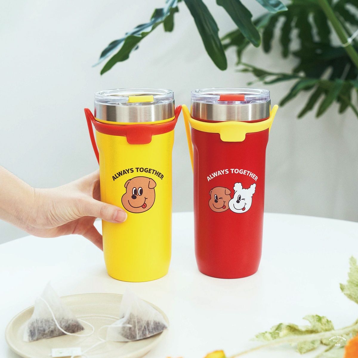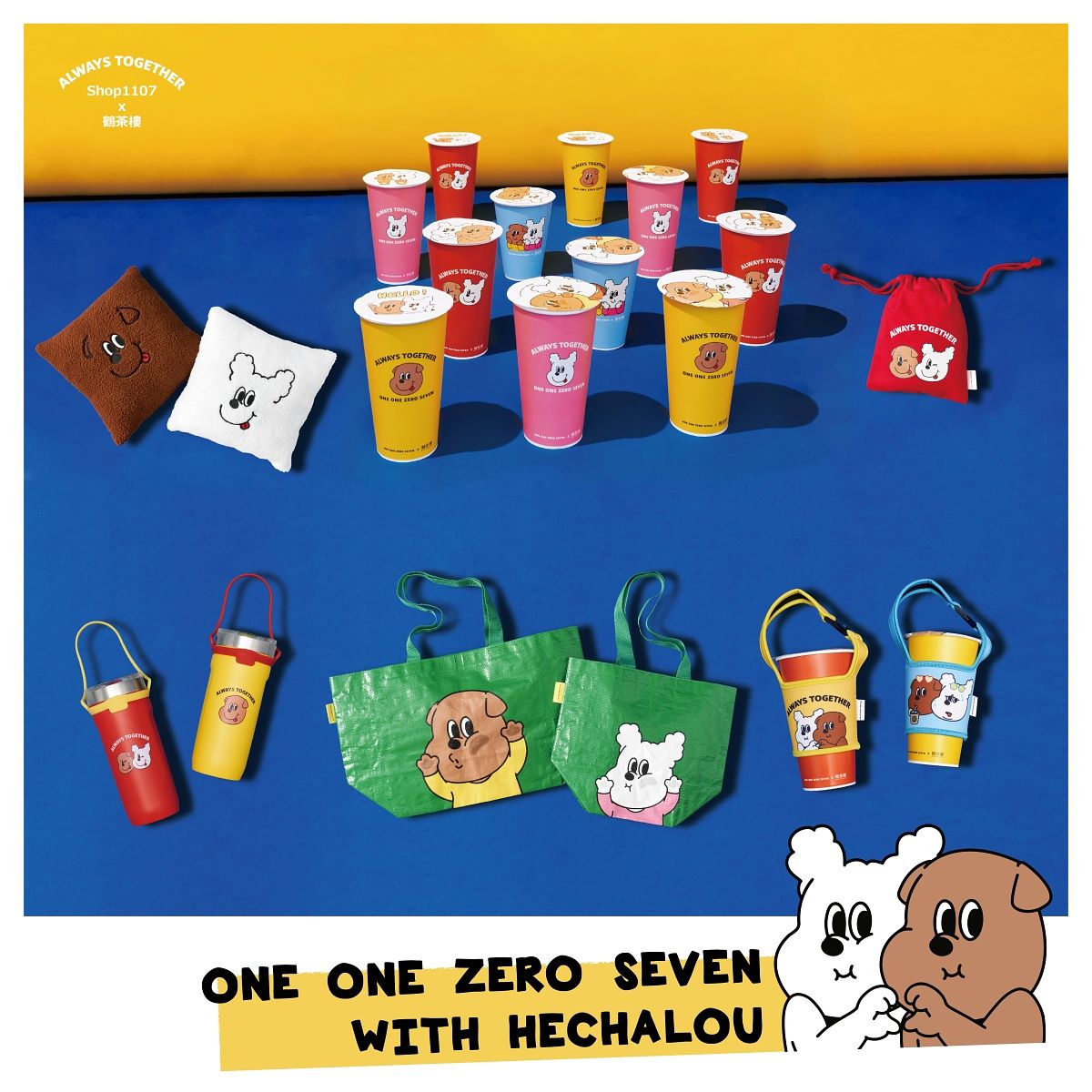 鶴茶樓與人氣韓國狗狗文創品牌「SHOP1107」推出4款聯名杯,以及9樣周邊商品,消費滿額免費贈送聯名貼紙。「SHOP1107」由一對韓國情侶設計師所創立,品牌以白色貴賓、咖啡色摺耳兩隻狗狗「Gongchil & Gongsil」為主要角色,化作不同形式的生活小物如:馬克杯、玻璃瓶、水壺、手機殼。這次與鶴茶樓跨界合作,將1107兩隻狗狗的快樂神情、可愛的舉動,融入日常生活用品,每一款都可愛到不行!