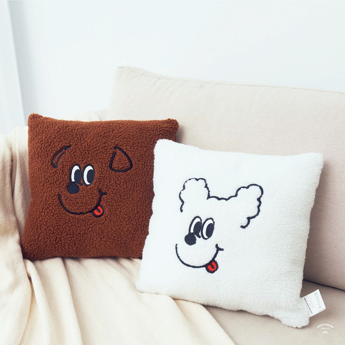 絨毛抱枕 (咖/白)