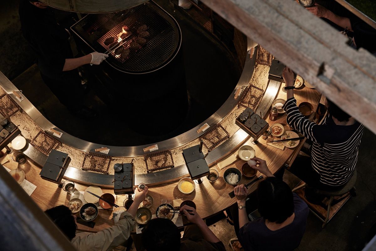 「挽肉と米」為了讓顧客立刻享用剛烤好的漢堡排,烤好後一秒就會送上桌!因熱騰騰現烤的漢堡排最好吃,刻意設計成環繞著烤爐的吧台座位,所有座位皆為『新鮮現烤的頭等座位』,以劇場型體驗直火炭烤的美味,