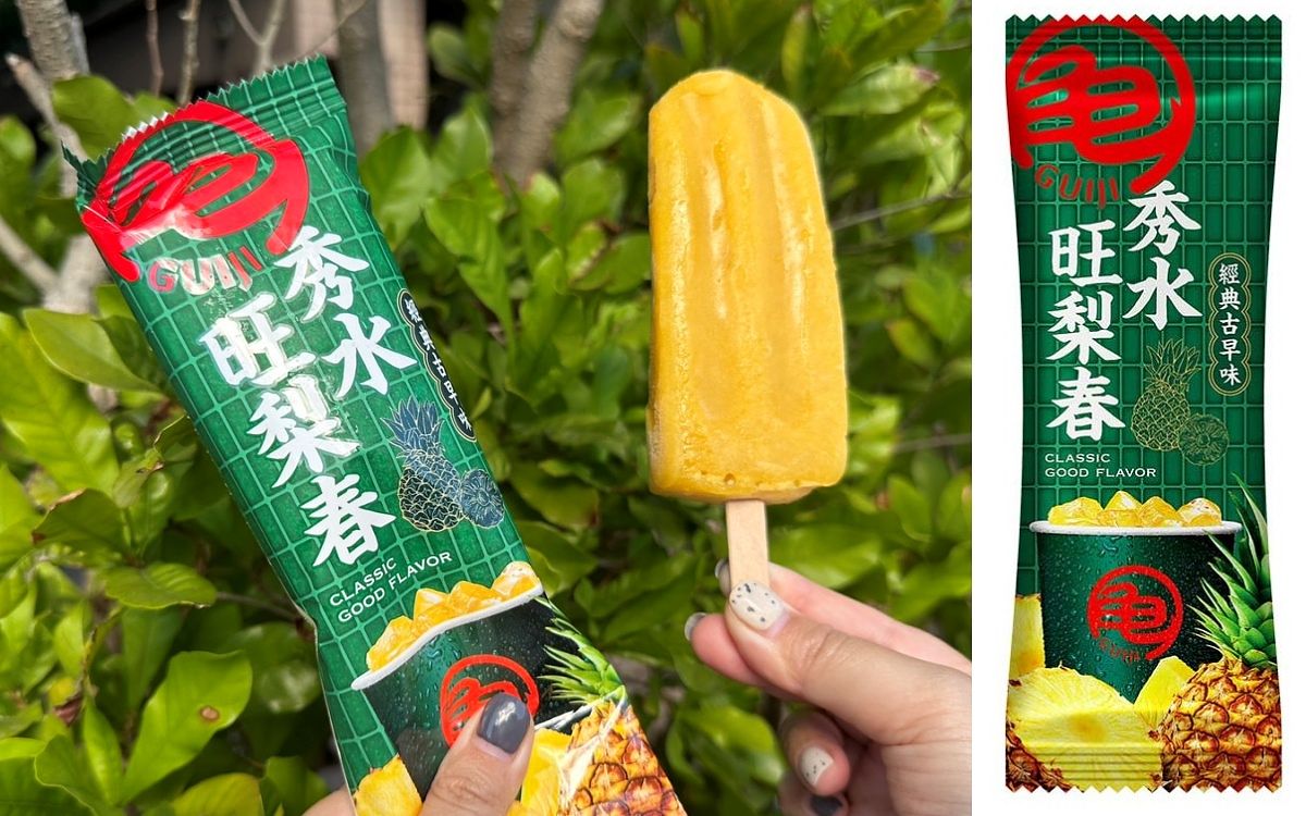 龜記的另外一款飲品「秀水旺梨春」,選用來自彰化秀水土鳳梨汁,加上台灣產四季春青茶,喝來口感清爽,洋溢著酸酸甜甜的古早滋味。同名冰棒以相同的經典比例打造而成,粉絲們當然要試試!
