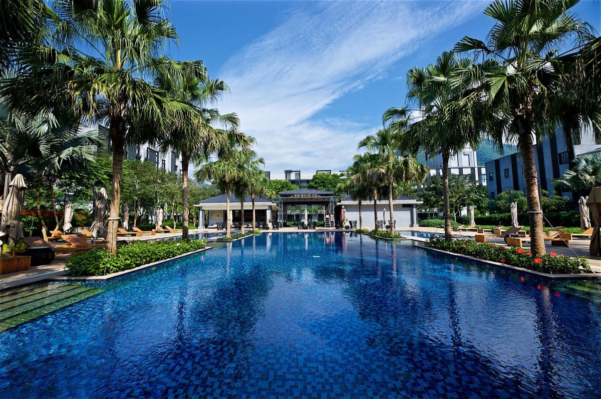 秧悅美地設有一座絕美戶外泳池,一張張舒適躺椅擺放在高大的椰子樹林蔭下,戲水後曬曬日光浴,絕對是旅程當中最讓人期待的亮點之一。泳池旁有一座小的純露水療池,以奇萊山山泉水注入有機香草萃取純露打造有機香草水療池,泡在其中能獲得紓壓、放鬆、去除疲勞的芳療效果。