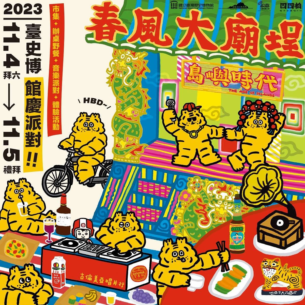 國立臺灣歷史博物館迎接12週年館慶,將在11月4日、5日與四四拍唱片團隊合作,攜手推出全新市集體驗活動「島嶼時代─春風大廟埕」,以一首經典歌曲「望春風」回溯1930黃金年代,打造一座輝煌的島嶼廟埕與民同樂,開啟那個年代最著時的玩樂體驗!