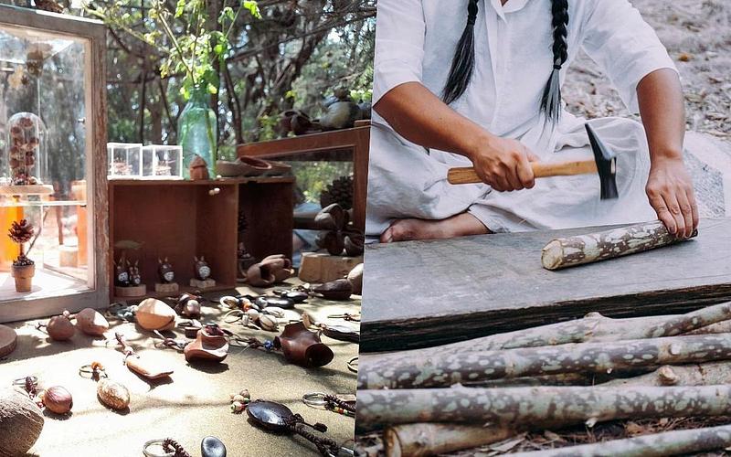 此外,現場還有翻玩臺灣歷史主題的工藝工作坊,詮釋島嶼之初的「引風堂種子創作」帶領民眾體驗種子的創作、部落職人「黑色雋永」以構樹製作帶領感受早期聚落工藝的精髓、陶藝工作室「懶惰實驗室」帶來山海之間的陶山製作、「初戀販賣所」以1930-40年代大片幅相機開拍復古攝像、金工品牌「LYNLI Jewelry」呈現早期農具及兵器鍛造的金工工作坊、「織事studio」帶來臺灣早期工業時代的紡織體驗、「Inky」帶來象徵民族交替融合的復古生活拼貼、最迷幻酷炫的「謝謝身體-有機的靈療中心」則演繹古老聚落裡的靈療中心,讓所有民眾在體驗創作的同時也在感受歷史的脈動和故事。