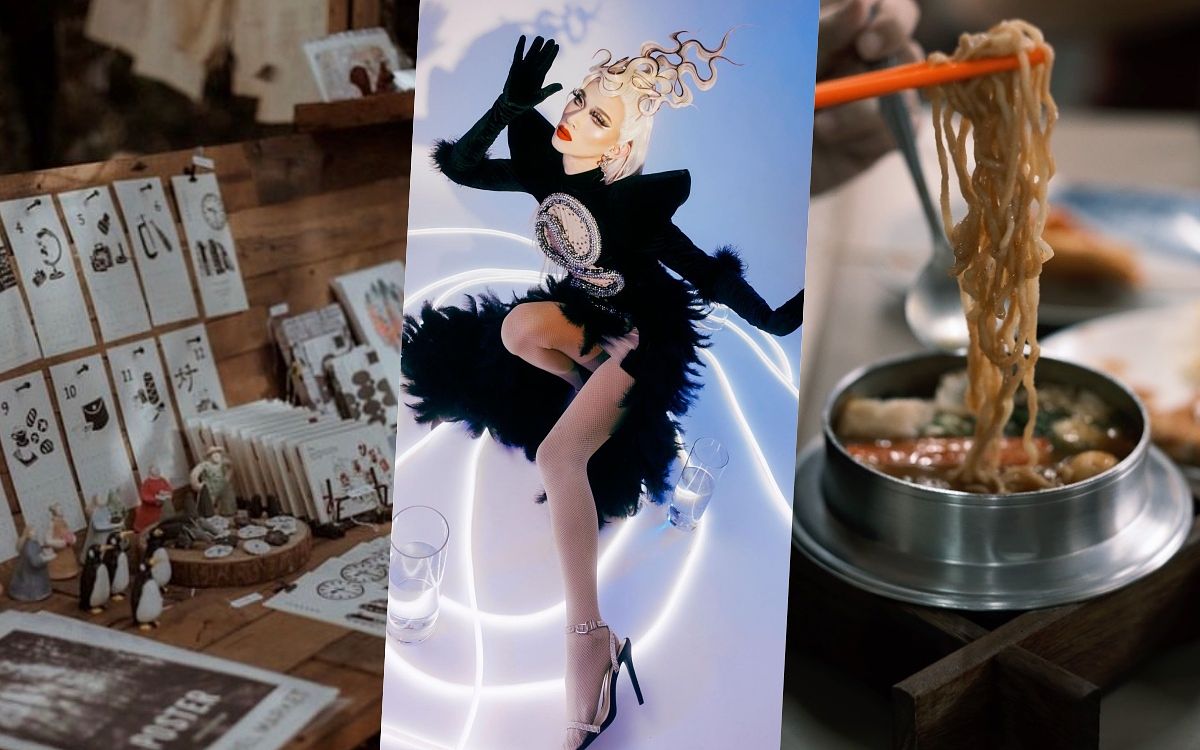 插畫家ericoco以最接地氣的俏皮主視覺,為春風大廟埕翻轉傳統新樣貌,同時邀請藝術家黃榮文與花藝品牌「草器」打造大型竹藝入口裝置,開啟穿越近百年到現今的春風街大門!