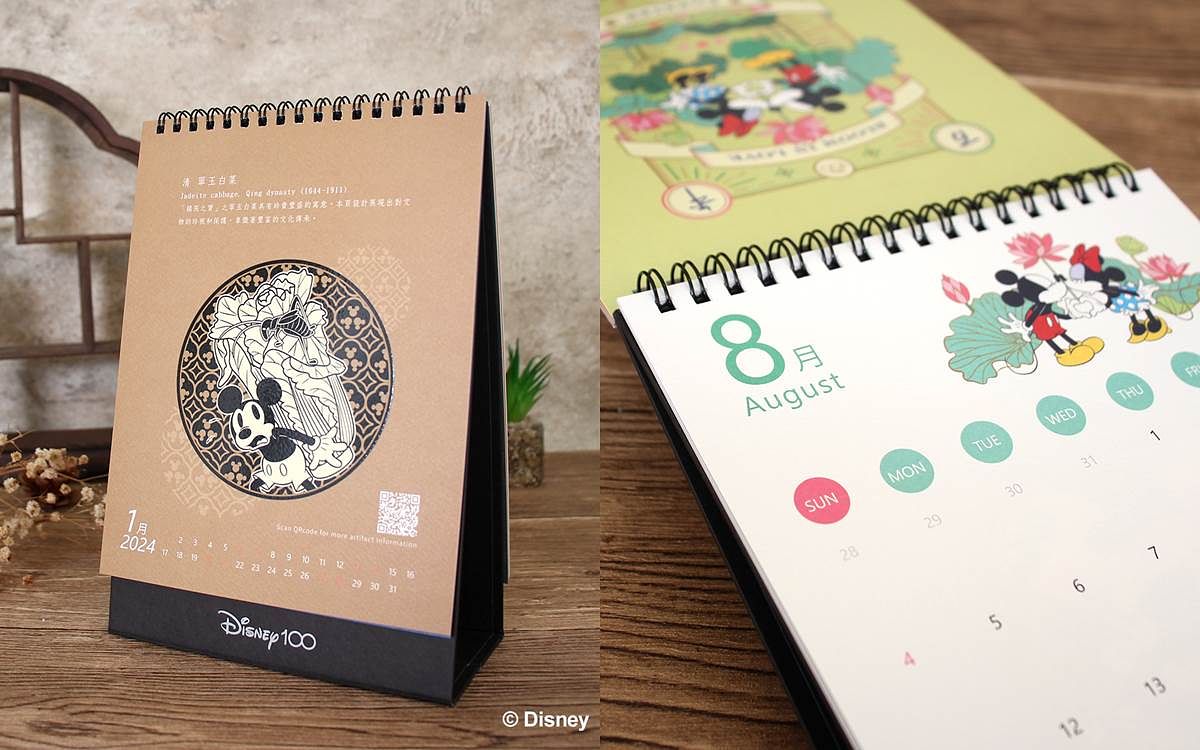 圖片來源:So-net提供 陪你邁入2024!米奇米妮設計躍上故宮桌曆 和翠玉白菜、肉形石及毛公鼎趣味互動