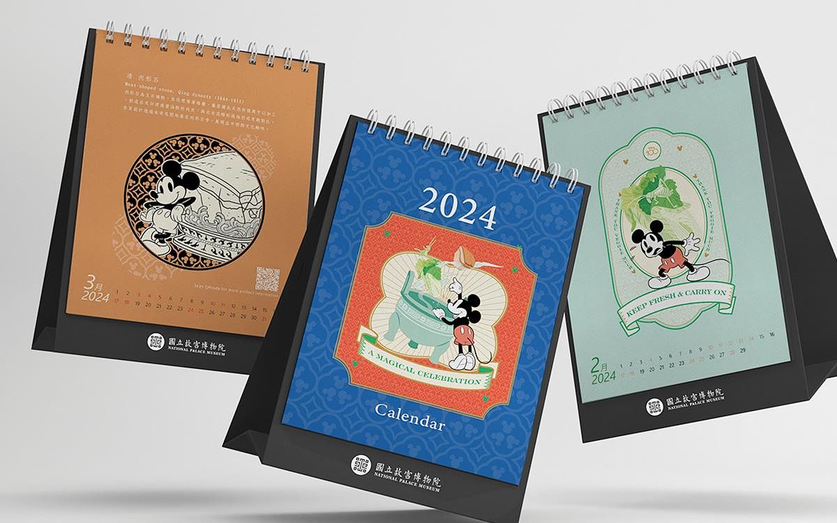 圖片來源:So-net提供 米奇米妮玩賞故宮三寶全球限定設計!2024年桌曆、明信片點燃文青魂