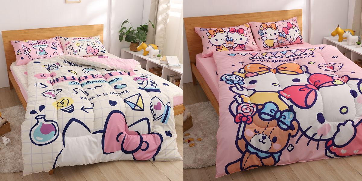 圖片來源:7-ELEVEN 同步推出年代套組,不用抽一次全套收藏!「立體精品」系列主推立體造型籤紙扭蛋機存錢筒、水晶球音樂盒、絨毛造型面紙套、公仔時鐘小夜燈、積木萬年曆,打造沉浸式的粉萌立體生活小物;「外出旅遊」系列從膳魔師保溫保冷壺杯系列、美妝刷具組、手提筆電包、後背包、35W雙孔供應器到EVO安全帽、飾品一應俱全,不論是居家還是外出、隨身都是滿滿的Hello Kitty;「居家換新」系列首推寢具、門簾(附伸縮桿),各種可愛兼具實用的周邊商品一次推出,萌系指數爆棚、爆擊粉絲們的心!
