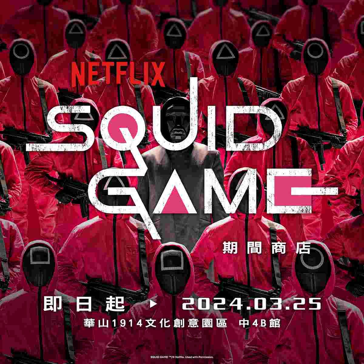 風靡全球的超人氣影集《魷魚遊戲 SQUID GAME》期間商店盛大開幕!即日起,將在華山1914文化創意產業園區中4B館首度登場!除了有從鑰匙圈、托特包,到T-shirt、大學服、抱枕...等,多達好幾十種的官方授權正版商品,現場更還原了劇中的關卡場景,像是剛入場的繽紛色系樓梯、超人氣的123木頭人小女孩、緊張刺激的玻璃墊腳石橋,還有劇中累積獎金的超大型球型獎金池,今年絕對必逛的期間商店,一定要來拍照打卡!