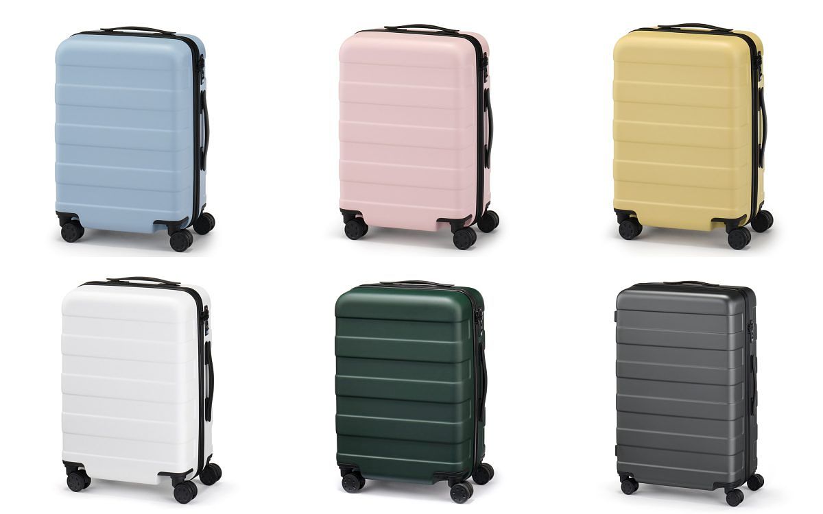 超人氣的無印良品行李箱,尺寸規格十分豐富,當中包含20L、36L、75L、和105L。在素材選用上,四輪硬殼止滑拉桿箱箱體為聚碳酸酯製成,堅韌不易損壞,內層則是使用回收桶裝水瓶製成的再生聚碳酸酯,降低二氧化碳排放的同時也愛護環境。雙輪式實心構造的輪子,具備按壓式止滑鎖功能。這次的新色將自3月~6月陸續推出,包含白色、灰色、淺粉、淺黃、淺藍及卡其綠,其中淺粉、淺黃、淺藍將在松高與大立門市獨家販售。