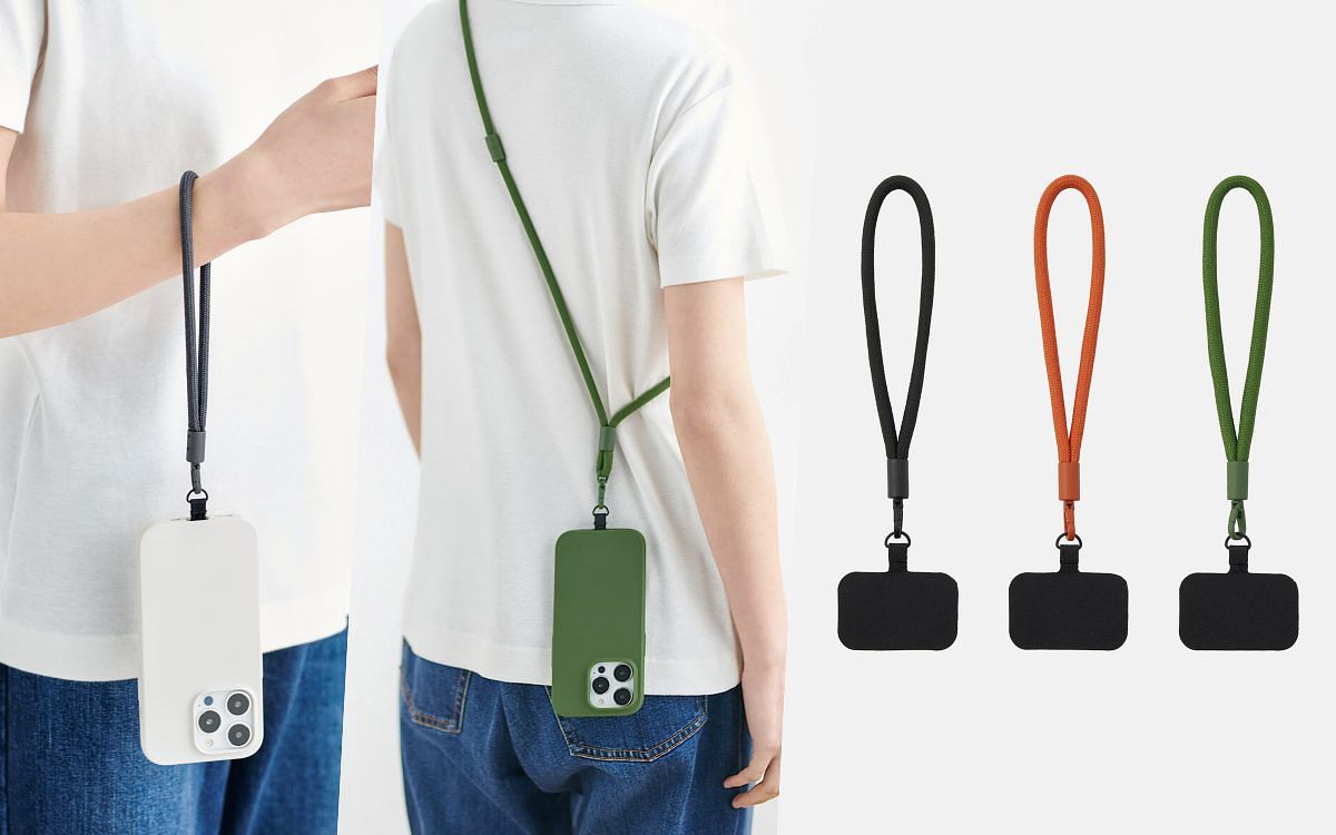 新推出的手機掛繩分為背帶式和腕帶式,並包含四種顏色:深灰、黑、綠及橘色,色調也可互相自由組合包搭配。(6月開賣)