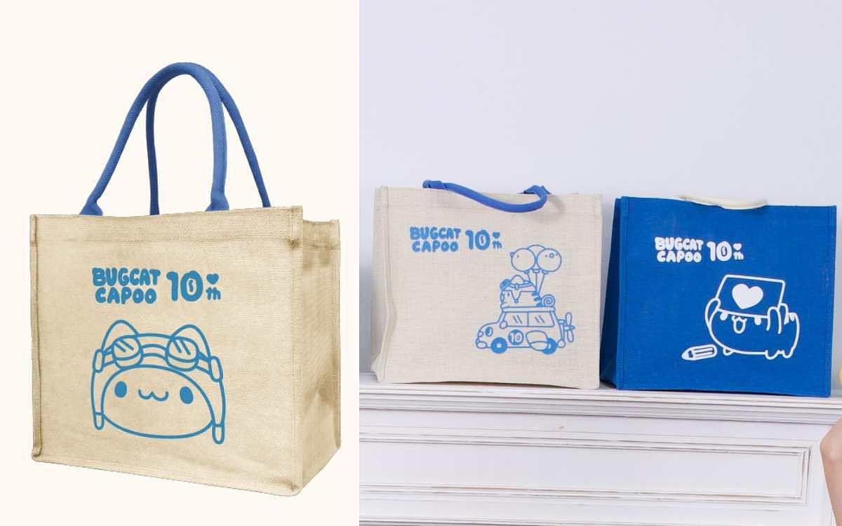 2款選擇,分別為藍款、米款,20公升大容量,輕巧好攜帶,黃麻材質, 內部防髒處理好擦拭。