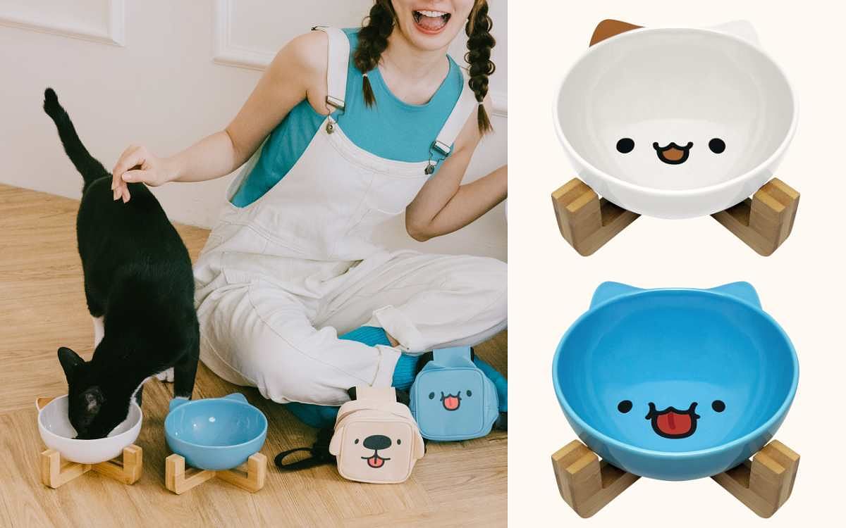 共2款選擇,分別為咖波款、奶泡貓款,陶瓷碗適用微波爐和洗碗機,造型竹製底座,平穩好放。