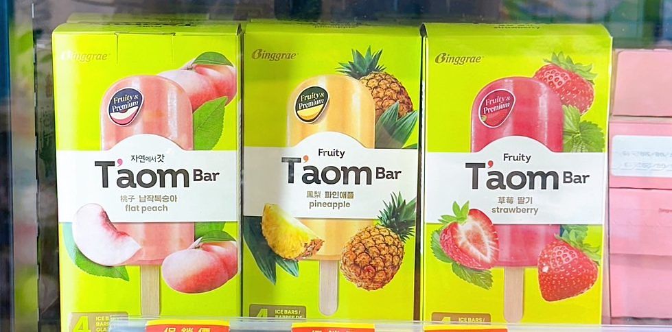 韓國食品'大廠賓格瑞推出的水果冰棒,每款口味都是鮮採的果汁風味, 吃起來清新香甜又不膩口。