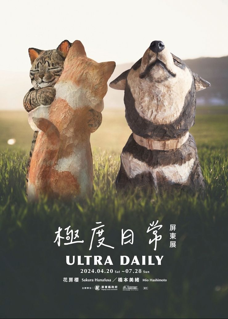 貓狗奴必衝南台灣!14公尺擁抱貓咪登陸屏東,日本療癒系「極度日常」貓狗木雕展來台,日本知名動物雕刻藝術家橋本美緒及花房櫻首次在台灣舉辦展覽《Ultra Daily極度日常 屏東展》,快來到屏東車城,一同被木雕藝術所治癒,在看海美術館感受溫暖日常!此外,現場還有橋本美緒的5件貓咪木雕將製作成全新5款扭蛋搶先全球首賣、台灣限定的精緻可愛周邊商品及特製的貓咪燒NEKO CAKE喔!