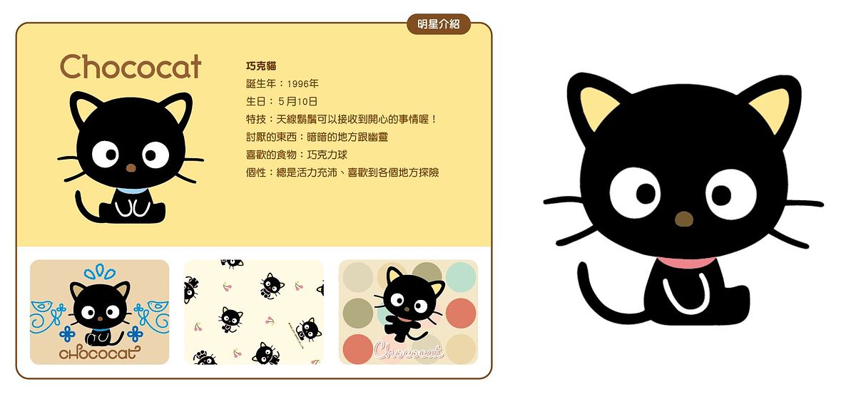 黑貓控們應該都對巧克貓不陌生吧!身為黑貓的他卻很討厭陰暗之處,以及幽靈!側坐著的模樣跟Kitty有幾分相似,睜著圓滾滾大眼睛的模樣超級無邪又純真。
