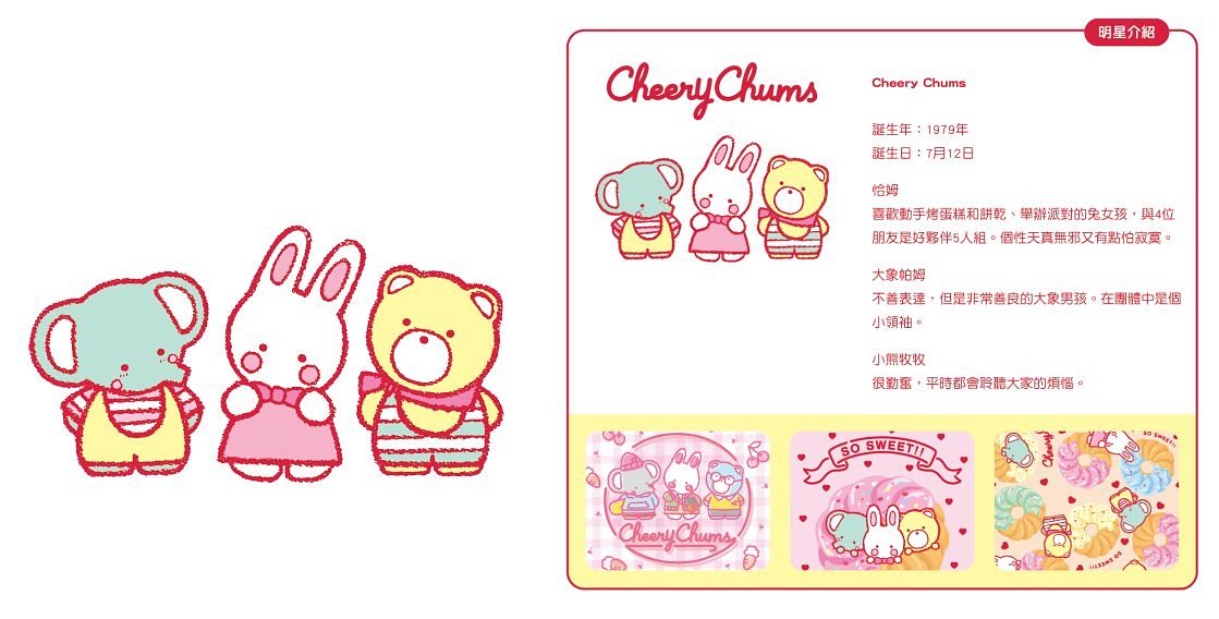 由兔兔女孩、大象男孩、以及小熊組成的三人組合,也是兒時常出現在文具用品上的人氣角色! 柔和的色彩配上圓潤的外型,扮演了小朋友們最貼心的夥伴。