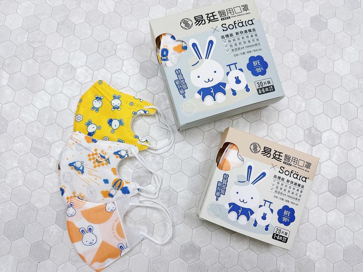 小寶貝適用的立體口罩還有這一款~「易廷X 舒芙氧3D醫用口罩」,嚴選3層輕柔布料,以超越市場獨家口罩貼合技術,溫柔呵護小寶貝們的嬌嫩肌膚,久戴也不怕負重,常保舒適的配戴感。此系列還推出雙花色,買一盒即可享有兩種花色搭配。